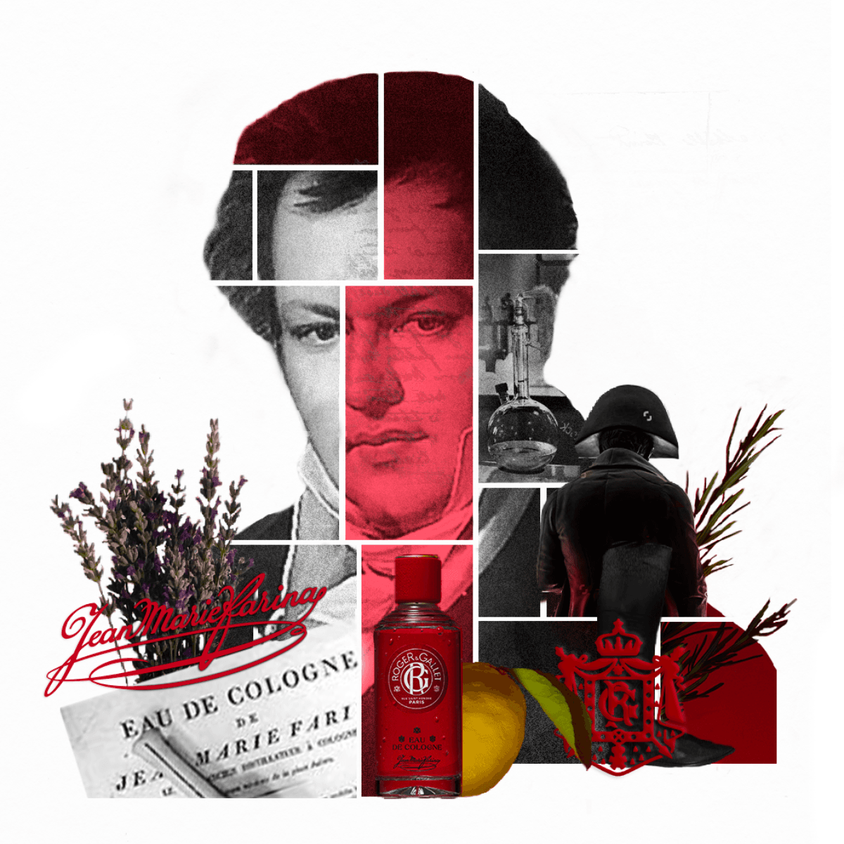 Il y a quelque chose ici d'intemporel, d'éternel, d'émouvant. L'Eau de Cologne Jean Marie Farina offre des retrouvailles avec soi-même, nous plonge dans une sensation de bien-être délicieuse et vivifiante dont on ne saurait jamais se lasser. En 1806, Jean Marie Farina créé un parfum d'une fraicheur méditerranéenne inédite, associant pour la première fois la fraicheur éclatante d'essences d'agrumes à l'élégance des aromates. Un accord gardé secret qui en un instant, va démoder tous les autres. Le petit-grain, la lavande, le romarin, le thym, enrichis d’huiles essentielles de citron, donnent à l'Eau de Cologne Jean Marie Farina une fraicheur singulière dont on a envie de se gorger. Son nouveau flacon paré d'or et d'un rouge vivifiant arbore la traditionnelle signature de Jean Marie Farina.