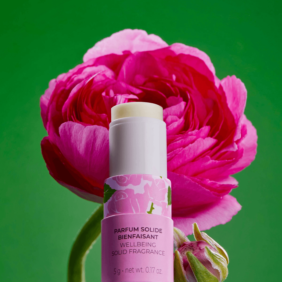 Découvrez votre Eau parfumée Bienfaisante Rose dans un nouveau format solide à déposer au creux du cou, sur le décolleté et les poignets.