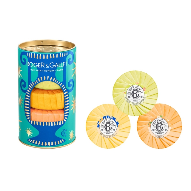 Iconique depuis 1879, le savon rond Roger&Gallet est parfumé à cœur afin de sentir bons jusqu’à sa dernière utilisation. Enveloppé dans son papier de soie plissé soleil, il parfumera avec élégance vos fêtes de fin d’année.